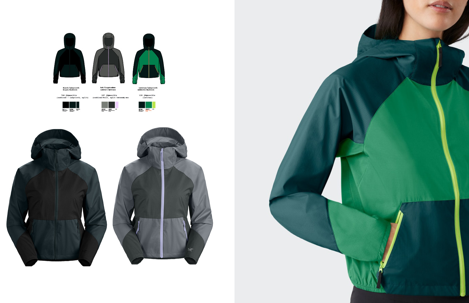 For the inaugural ReBird apparel project at Arc’teryx, I designed 6 limited edition colourways for the men’s and women’s Stowe Windshells. Concepting unique, colourblocked styles from a limited selection of excess raw materials, I delivered fun, yet commercial colourways while saving waste and promoting circularity.